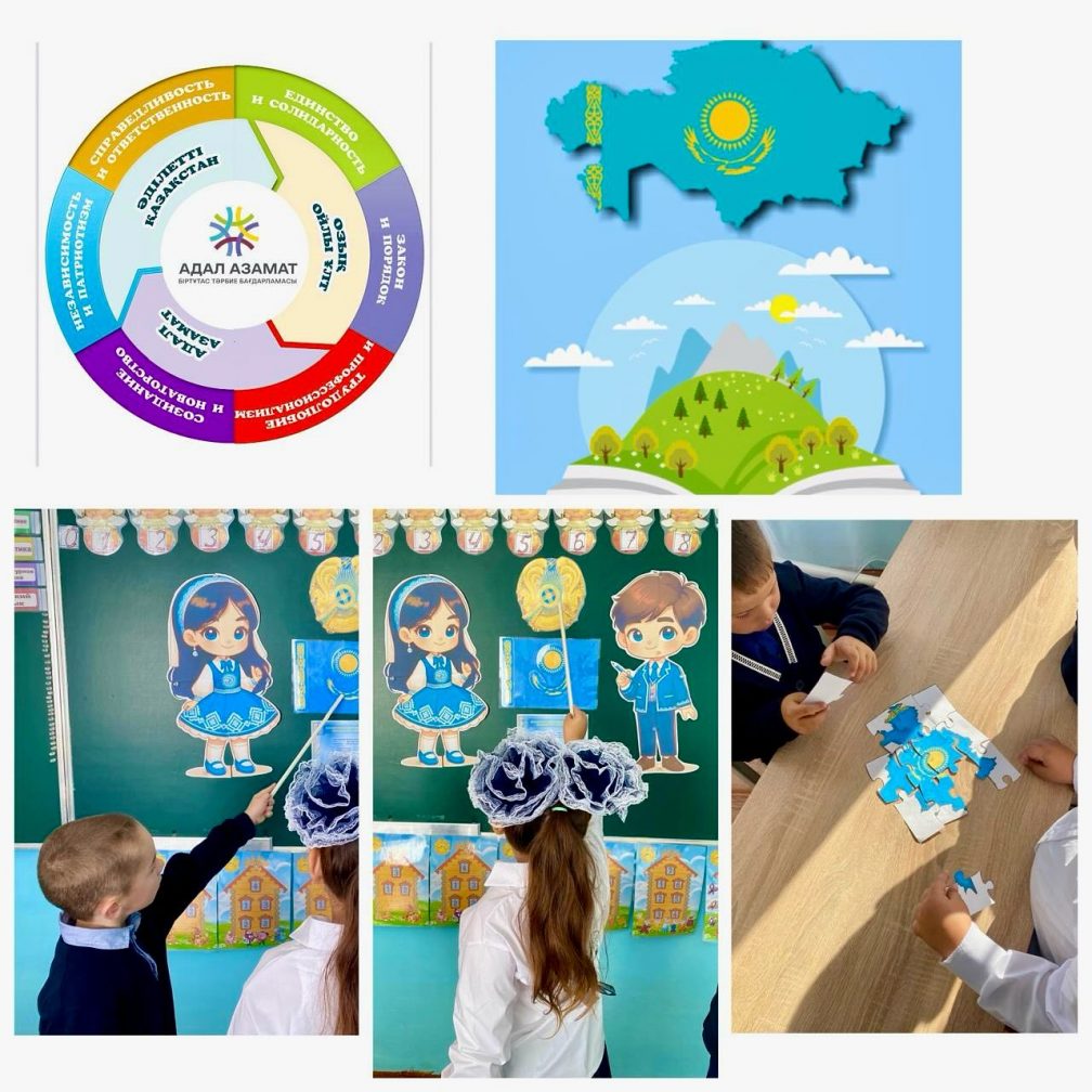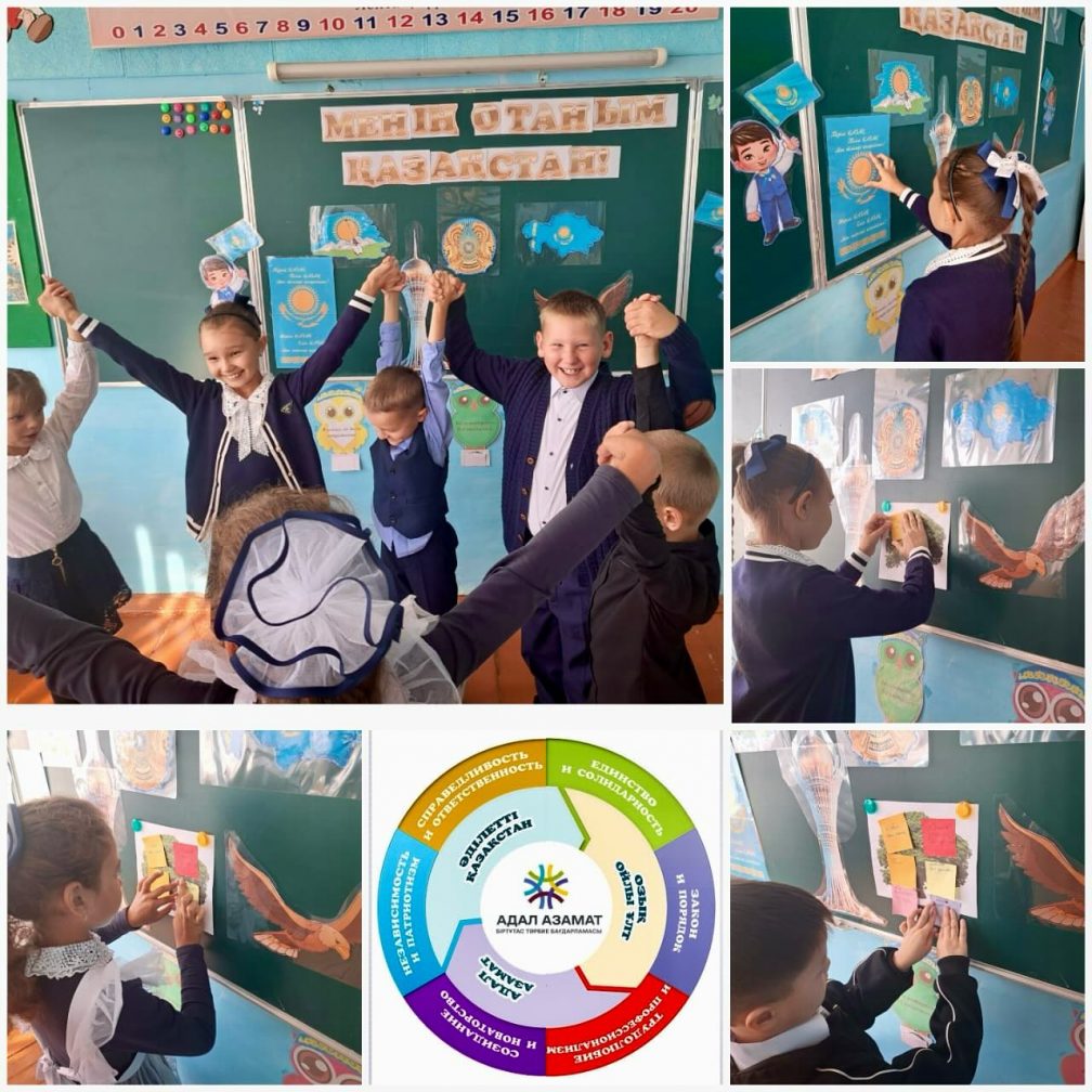Сабақ басталар алдында оқушылар Қазақстан Әнұранын орындады. Сынып сағатын өткізу жаңа оқу жылының басталуына орайластырылды және оқушылардың бойында негізгі құндылықтарды — Тәуелсіздік пен патриотизмді қалыптастырудағы маңызды кезең болды. Ұлттық бірегейлікке, елдің мәдени әртүрлілігіне және оның дамуындағы әрбір азаматтың рөліне ерекше назар аударылды. Балалар Конституцияның тарихы, оның әрбір азаматтың өміріндегі маңызы туралы білді, елдің Негізгі заңында бекітілген құқықтар мен міндеттерді талқылады, сондай-ақ Отан, бейбітшілік пен бірлік туралы өз ойларымен бөлісті.