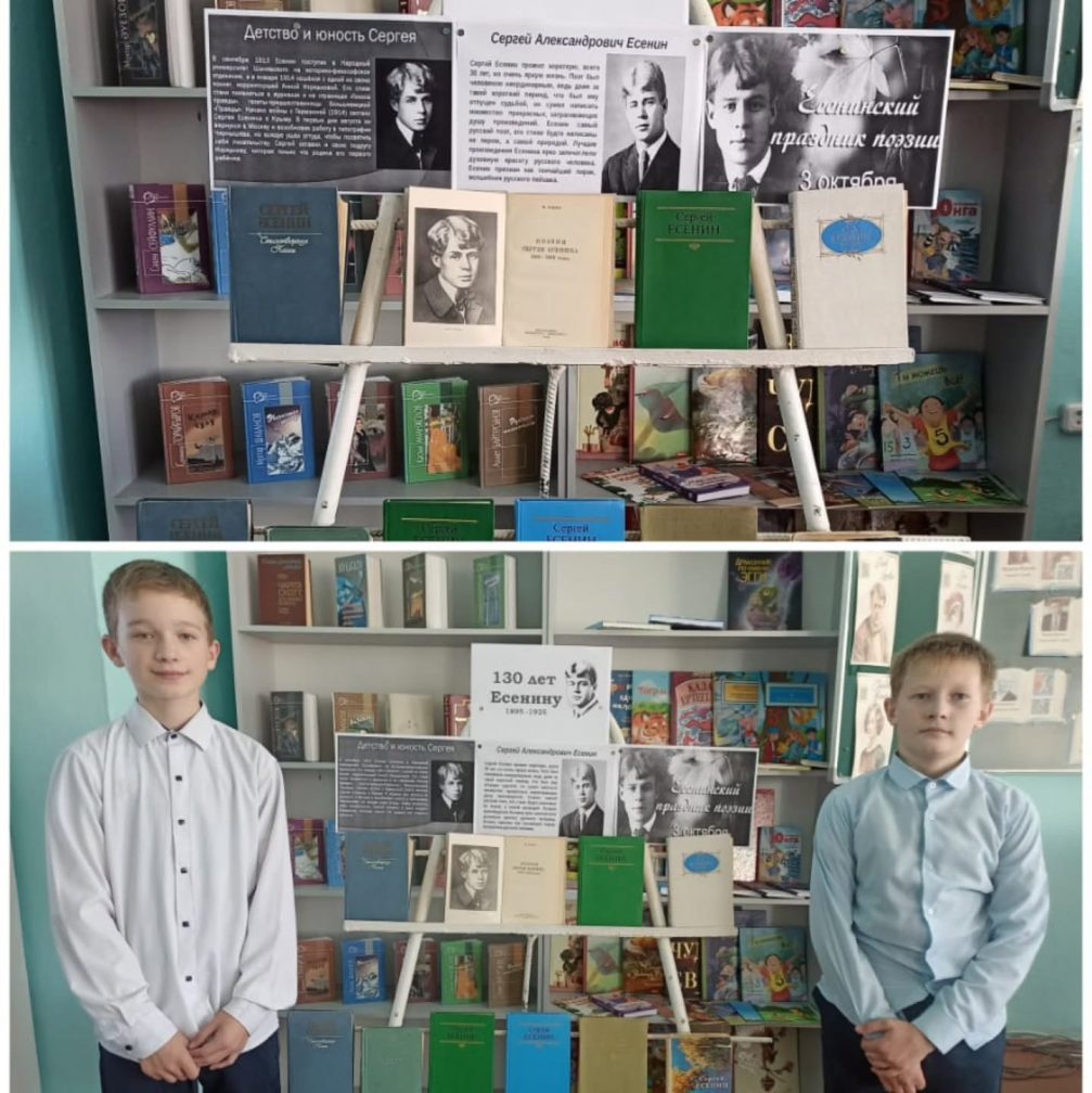 Тимашевка мемлекеттік бастауыш мектебінің кітапханашысы «3 қазан – ақын С.А.Есениннің туғанына 130 жыл» атты тақырыптық сөре жасады.